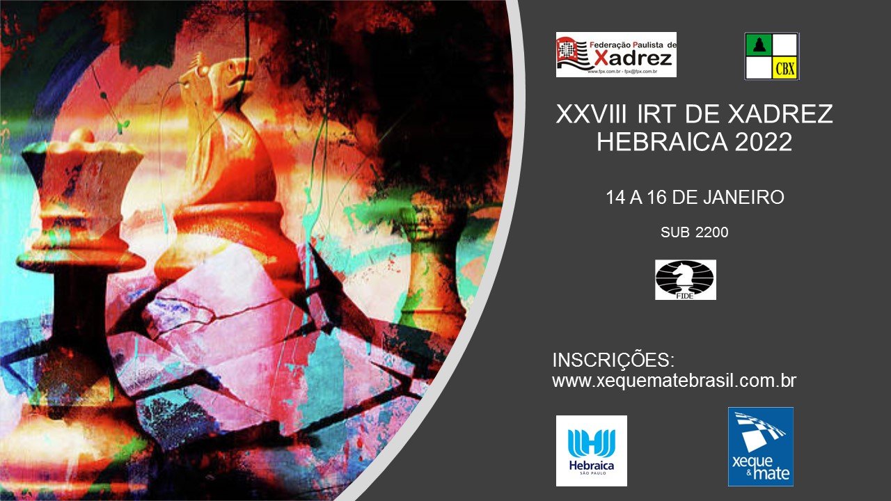 Sob a Direção de Davy D’Israel e Arbitragem de André Salama, começou hoje, dia 14/01 o XXVIII IRT de XADREZ no Clube A Hebraica. Este é o primeiro torneio presencial que o Clube realiza após dois anos de abstinência. O Torneio conta com a presença de 100 participantes e é válido para movimentação e obtenção de rating fide. Ofereçe uma premiação de R$1500,00 além de troféus e medalhas. Esperamos que seja o primeiro de muitos torneios ao longo do ano e desejamos um bom evento a todos os participantes.