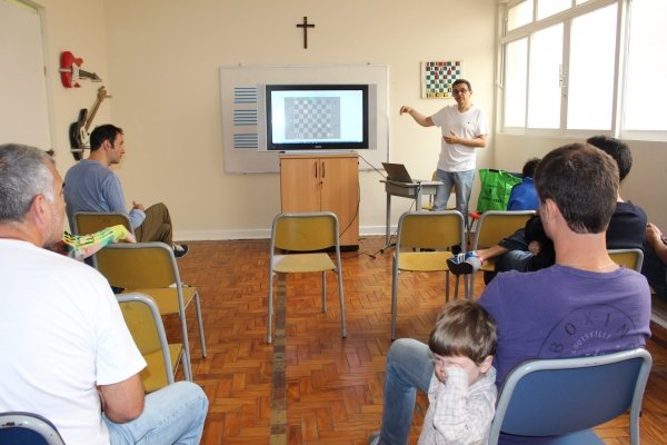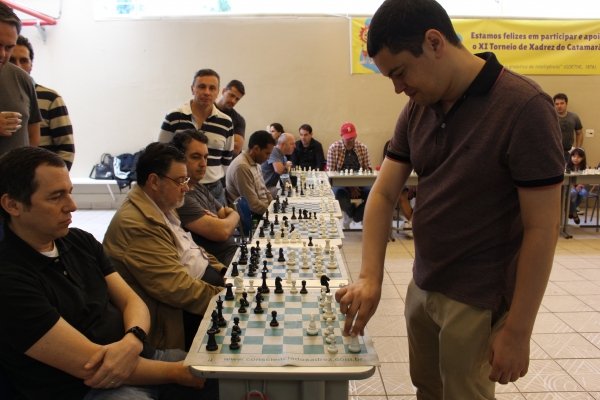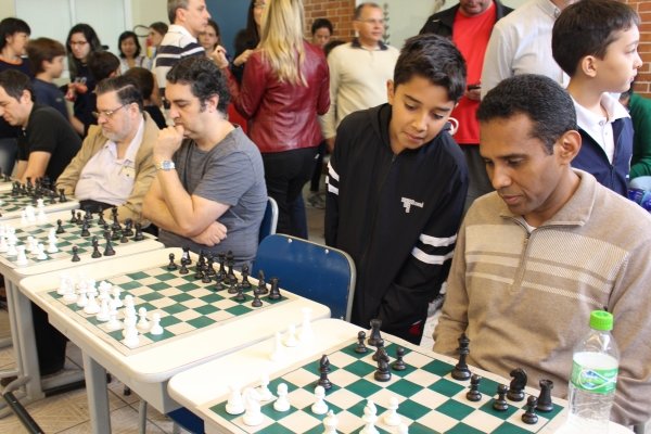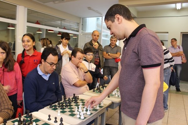 No total, foram 15 participantes que enfrentaram o Mestre Internacional Marcus Vinicius M. dos Santos. Num ambiente descontraído, as partidas chamaram a atenção das crianças que acompanhavam o Mestre e suas jogadas em cada tabuleiro. Rodrigo Parreira foi o único jogador a lograr um empate!
